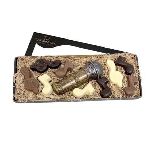 I denne særlige gaveæske forenes to passionsområder: musik og chokolade. 🎵🍬 Lad tonerne flyde frit med den medfølgende mikrofon og noder, mens du forkæler dig selv med lækker, håndlavet chokolade i form af en G-nøgle. 🎼🍫