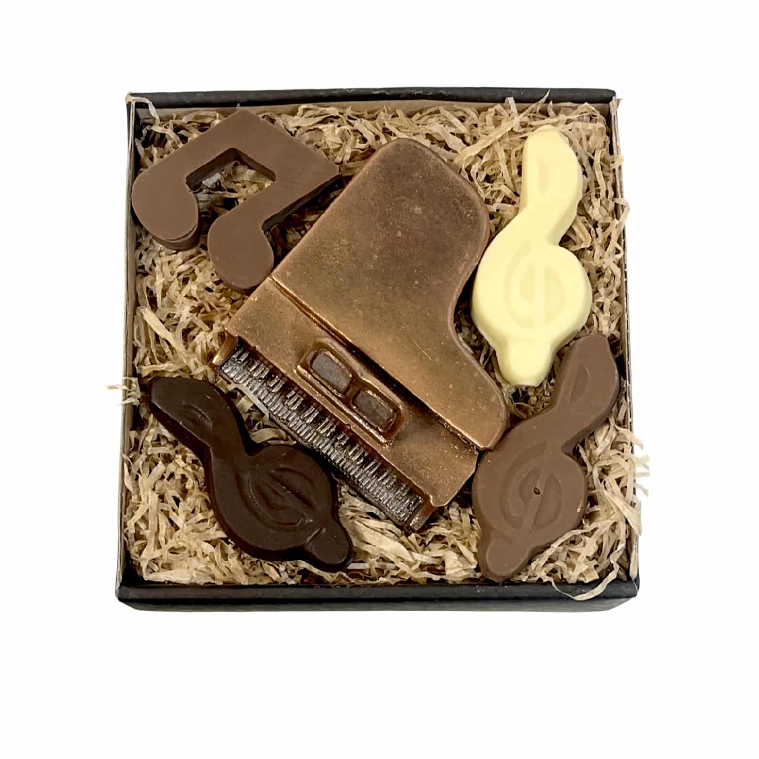 Et elegant lille flygel i håndlavet kvalitetschokolade – så detaljeret, at man næsten kan høre tonerne spille.